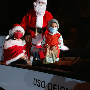 La tarde noche de ayer viernes 18 de diciembre fue una muy diferente en el Distrito, cuando un grupo de vehículos con luces, música y mucha alegría salió a recorrer las calles, junto a varios “Colachos” para repartir esperanza, amor y dulces a todos los niños de la comunidad.